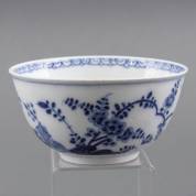 Porseleinen kom met blauw-wit chinoiseriedecor van bloemen in landschap, gemerkt, uitvoering Meissen, Duitsland, 7,5 × 14,5 cm