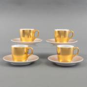 Vier porseleinen espressokop-en-schotels met gouddecor, model Cosmopolitan, uitvoering Meissen, Duitsland, in originele bewaardozen, vierde helft 20e eeuw, schotel: Ø 12,5 cm