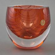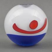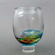 Dikwandige blanke vaas met kleurzwemen, ontwerp Gerard Thomassen, uitvoering Glasfabriek Leerdam, 1995, Ø 12 cm × 20 cm