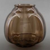 Bruin glazen vaas, model Flora, ontwerp Andries D. Copier, Glasfabriek Leerdam, 1938 -rand bijgeslepen-, Ø 28 cm