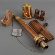 Divers kleingoed: messing brandweerspuit, paar gesneden leeuwtjes, etc., lengte spuit 59 cm