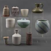 Tien keramische objecten van Nederlandse keramisten waaronder Nirdosch Petra van Heesbeen, gebr. Andrée, Nel Goedhart, en Studio Fris, Edam, 13 × Ø 14 cm