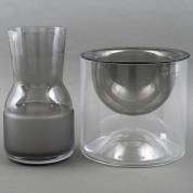 Rookglazen vaas met gesatineerd glazen band, model SHIFT, ontwerp Arian Brekveld, uitvoering Royal Leerdam Crystal, gemerkt, 2019, en glazen vaas met rookglazen binnenvaas, 30 × Ø 13 cm