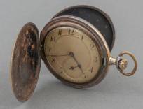 Herenvestzakhorloge in met goud gedamasceerde stalen kast, eerste kwart 20e eeuw -sleets-