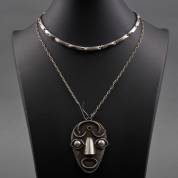 Titanium schakelcollier, Boccia, deels gematteerd, daarbij: onedele hanger in de vorm van een gezicht