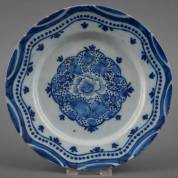 Delfts aardewerk bord met blauw-wit bloemdecor, 18e eeuw -enkele randschilfers-, Ø 22,5 cm, herkomst: privécollectie van kunsthandelaar Abraham van der Meer (1927-2008), destijds gevestigd op de Spiegelgracht 3 te Amsterdam
