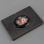 Presse-papier met micromozaïek medaillion: boeket, Italië, 19e eeuw -chip-, 11 × 8 cm