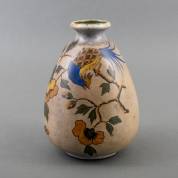 Aardewerk vaas met polychroom decor van vogel op tak, ontwerp Antoine Dubois, België, tweede kwart 20e eeuw, 28 × Ø 18,5 cm