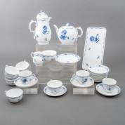 Porseleinen koffie- en theeserviesgedeelte, model Alt Fürstenberg, decor Lottine, uitvoering Fürstenberg, bestaande uit: koffiepot, theepot, roomkannetje, suikerpot -geen deksel-, cakeschaal, rond schaaltje, acht theekopjes -één met haarlijn-, elf schoteltjes, en drie koffiekop-en-schotels