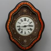 Oeil-de-boeuf klok met inlegwerk, de geëmailleerde wijzerplaat met Romeinse cijfers, met adres: Gaunay, á Larochemillay, Frankrijk, 20e eeuw, 62 × 47,5 cm