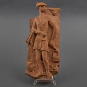 Keramische wandsculptuur uit chamotteklei, wederopbouw, gedateerd '52 -enkele kleine chipjes-, 37 × 18 × 5 cm