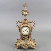 Pendule in bronzen kast, bekroond door vaasvormig ornament, Louis Quinze-stijl, circa 1900 -kleine wijzer afgebroken, glas voor wijzerplaat ontbreekt-, hoogte 53 cm