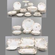 Porseleinen serviesgedeelte met deels verguld floraal decor, uitvoering Haviland & Co., Limoges, Frankrijk, eind 19e eeuw -enkele defecten-, grootste dienschaal 51 × 30
