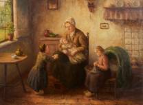 Cornelius Wouter Bouter (1888-1966), boerengezin, olieverf op doek, l.o. gesigneerd met pseudoniem A.J. van Eijbergen, 60 × 80 cm