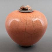 Mieke Selleslagh (1954), rakugestookte bedekte vaas, België, jaren '80, 20 × Ø 20 cm