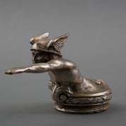 Vernikkeld messing auto radiateurdop: Hermes, tweede kwart 20e eeuw, 9 × 16 × 7 cm