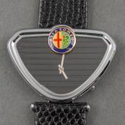Herenpolshorloge Alfa Romeo, Verco international Nederland, Alfa Romeo Stile, de kast in de vorm van een Alfa Romeo grill en voorzien van logo, aan zwart lederen band, in originele doos met papieren, oplage 407/2000, 1989