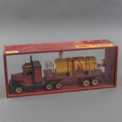 Truck met oplegger, 'Whisky Transport', de glazen tank gevuld met whisky, 'bottle serie nummer 30', distillateur Macinblair & Son, Schotland, winkelier H.P. de Vreng & Zonen, Amsterdam, in vitrine, 47 × 19 × 14 cm