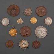 13 diverse medailles en penningen, de meeste landbouwmedailles, uitgereikt aan de heer J.D. Preuijt in de tweede helft van de 19e eeuw