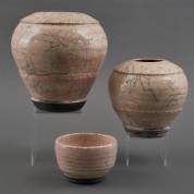 Hugo Rabaey (1948), twee geglazuurde keramische vazen en kom, raku gestookt, gemonogrammeerd, grootste vaas 18,5 × Ø 19 cm