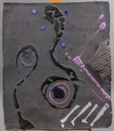 Keisuke Ueno (1958), zonder titel, grijze keramische tegel met geglazuurde abstracte compositie, verso gesigneerd en gedateerd '87, 53 × 45 cm