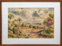 William Frederick Padwick Burton (1886-1971), Congolees dorpsgezicht, aquarel, l.o. gesigneerd, 21,5 × 32,5 cm