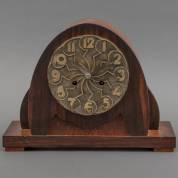 Schoorsteenklok in houten kast met gegoten bronzen wijzerplaat, vermoedelijk uitvoering Mundiklok, Nederland, jaren '20/30, 26,5 × 35,5 × 14 cm