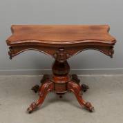 Mahonie speeltafel op vierspantpoot, het gecontourneerde blad met groen vilt bekleed, tweede helft 19e eeuw, 74 × 92 × 50 cm