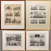 Vier ingekleurde prenten: het zeemansleven, het buitenleven, leven aan boord en nautische kledij, 20e eeuw -enkele verkleuringen, vouwen-, 36 × 30 cm