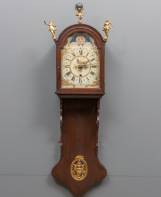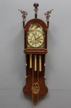 Friese staartklok in wortelnotengefineerde kast, tweede helft 20e eeuw, 126 × 37 × 22 cm