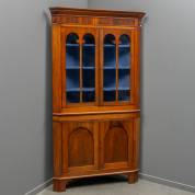 Mahonie hoekkast met beglaasde deuren in de bovenkast, tweede helft 19e eeuw -drie kleine profieltjes ontbreken-, 207 × 95 × 60 cm