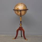 Globe met reliëf op mahonie standaard met messing beslag, 100 × Ø 40 cm