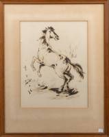 Norbert Ehrenfreud (20e eeuw), steigerend paard, Oost-Indische inkt en potlood op papier, r.o. gesigneerd, 32,5 × 25,5 cm