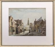 Hollandse School: straatgezicht, aquarel, niet gesigneerd, 19e eeuw -foxing-, 21 × 27 cm