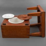 Mahonie stilletje waarvan het deksel tevens als standaard dient, 19e eeuw, 28 × 41 × 41 cm