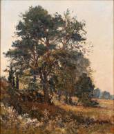 Adriaan Keus (1875-1955), grove den op de heide, olieverf op paneel, r.o. gesigneerd, 68 × 58 cm