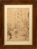 Hollandse School: vermoedelijk koning Willem I wordt onthaald in Den Haag, sepia, niet gesigneerd, 22,5 × 15 cm