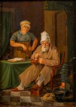 Rein Miedema (1835-1912), koude winteravond bij de kachel, olieverf op paneel, l.o. gesigneerd en gedateerd 1875, 33 × 24 cm