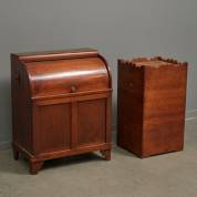 Mahonie kolenkastje in de vorm van een secretaire, en eiken kolenkastje met gecontourneerde rand, beide tweede helft 19e eeuw, 86 × 68 × 42 cm
