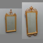 Twee gefacetteerde spiegels, waarvan één verguld, beide Louis Seize-stijl -één kuif gelijmd-, afmetingen grootste 80 × 34 cm
