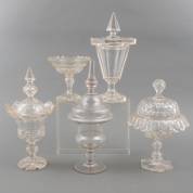 Vijf kristallen gembercoupes, 20e eeuw -lichte gebruikssporen, één zonder deksel-, 37 cm