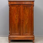 Mahonie linnenkast, met achter de deuren vier planken en twee lades, Hollands, biedermeier, 177 × 110 × 47 cm