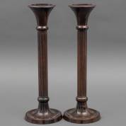 Paar bruingepatineerde metalen zuilvormige kandelaars, 46 × Ø 15,5 cm