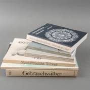 Zes boeken: Blaauwen, A.L. den (Red.) 'Nederlands zilver 1580-1830'. 's-Gravenhage, 1979; K.A. Citroen e.a. 'Meesterwerken in zilver: Amsterdams zilver 1520-1820'. Lochem, 1984; I.L. Szénássy, 'Maastrichts zilver'. 1978; A. Gruber, 'Gebrauchssilber des 16. bis 19. Jahrhunderts'. 1982. 4to; Enz