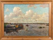 Wouter van Smorenburg (1880-1918), plassengezicht met aangemeerde boten, olieverf op paneel, l.o. gesigneerd -craquelé, paneel licht gebogen-, 60,5 × 84,5 cm