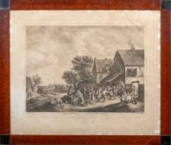 Ets / gravure: 'Divertissements de paysans Hollandois', door Louis Surugue (1686-1762), naar origineel van David Teniers (1610-1690) -bruine vlekjes-, 33 × 45 cm