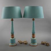 Paar turquoise gekleurde tafellampen met dito gekleurde kappen en gouden details, modern, hoogte: 75 cm