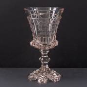 Gefacetteerde kristallen coupe met inscriptie: '25 Jarige Echtvereening van den Hr. J.G. Brandt Jr. en Mvr. D.M. Hombrink' en verso: 'Aangeboden door H. v.d. Steen 1-5-1862', hoogte 24 cm -deksel ontbreekt-