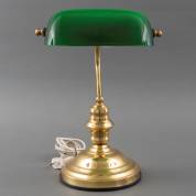 Notarislampje met groene opaline kap en messing voet, 37 × 28 × 18 cm