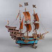 Houten scheepsmodel van een driemaster, 20e eeuw, 90 × 90 × 30 cm